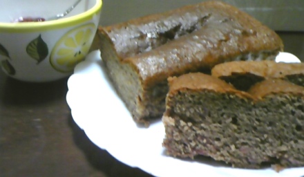 ・紙を敷いたパウンドケーキ型に流し入れ170度のオーブンで30~40分かけてジックリ焼きます。